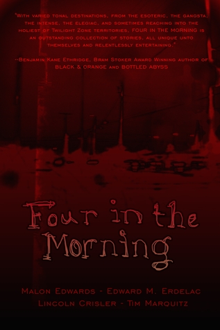 In about three weeks I have this book coming out called FOUR IN THE MORNING. There are two really awesome things about this book. First, it isn’t just my book. The three stories joining my piece are each written by a talented writer I’m privileged to call a friend. Second, all four stories are dark, but each is firmly entrenched in a different genre: steampunk, urban fantasy, science fiction and horror, to be exact. So I came up with an idea and got to bring it to life with a few good pals, and readers get what amounts to a speculative fiction buffet.