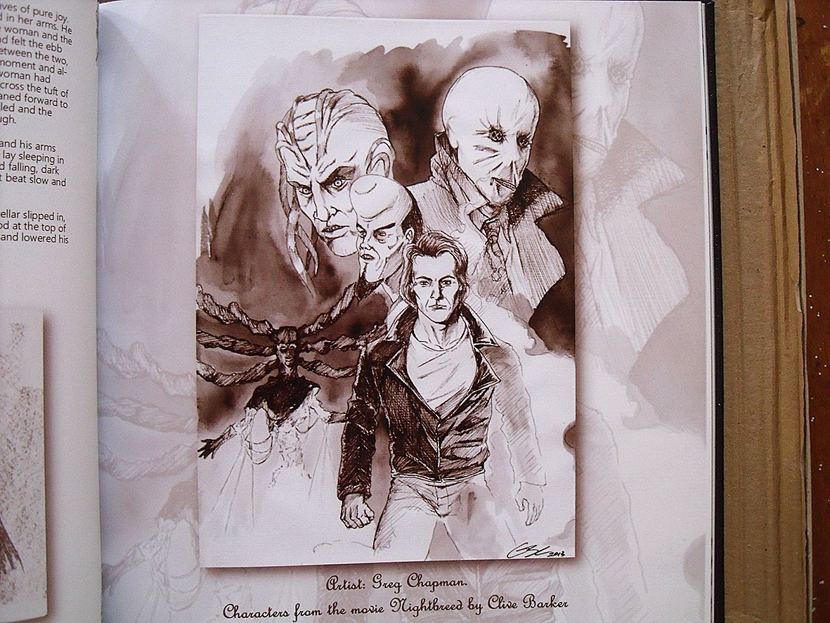 I created two pieces – a black and white ink drawing of some of the Nightbreed characters and a watercolour illustration to accompany one of Steve’s stories. Not only that, there is also artwork by some of the best artists from around the world, including art by the man himself, Clive Barker, Paul Kane, Matt Taylor and many more. The look and feel of the oversized book, with its leather cover and glossy paper, just took my breath away. I never dreamed I would share a table of contents with Clive Barker, so to say that I’m chuffed would be an understatement.