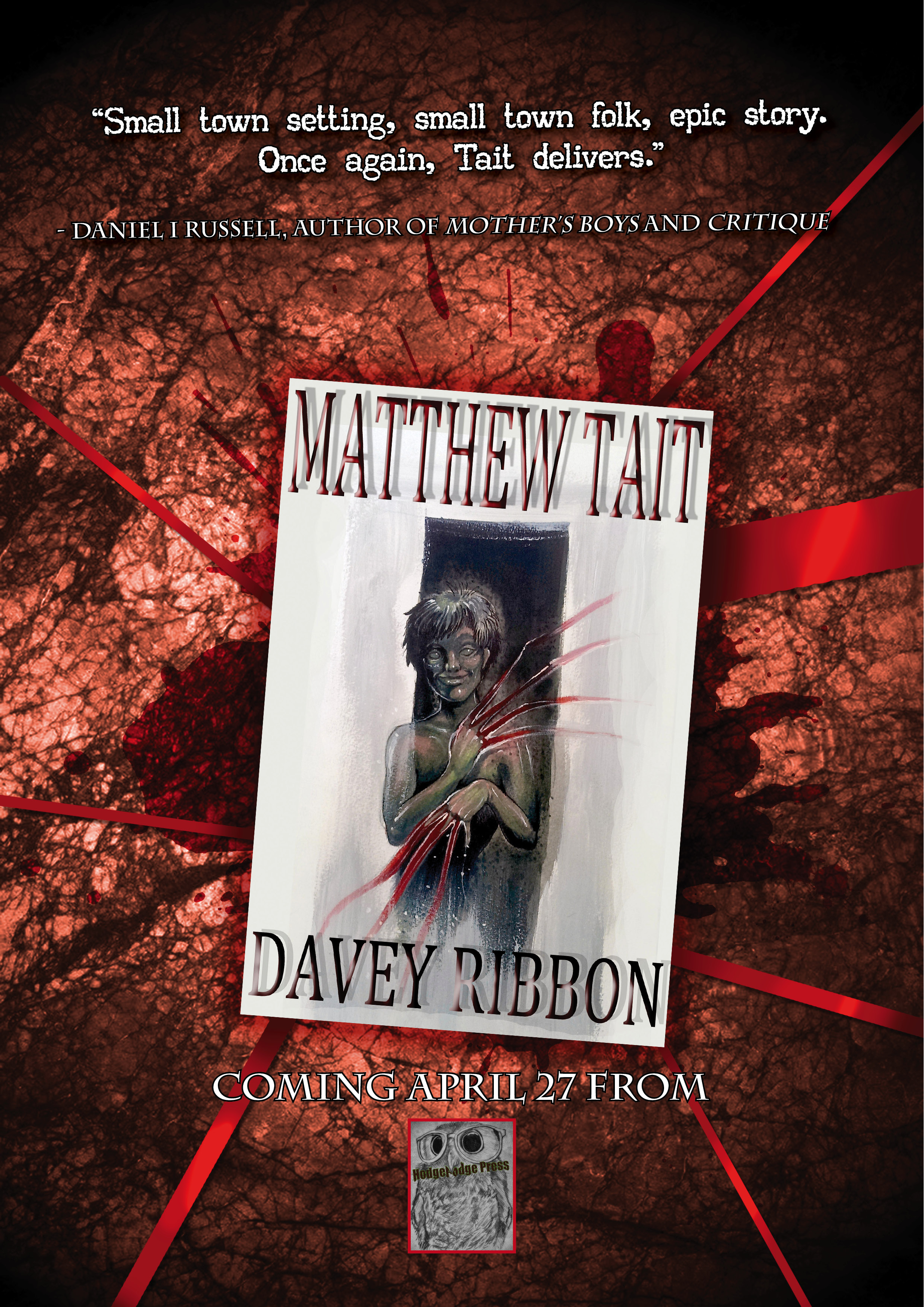 My friend-in-horror Matthew Tait will have a new book out on April 27 – Davey Ribbon.