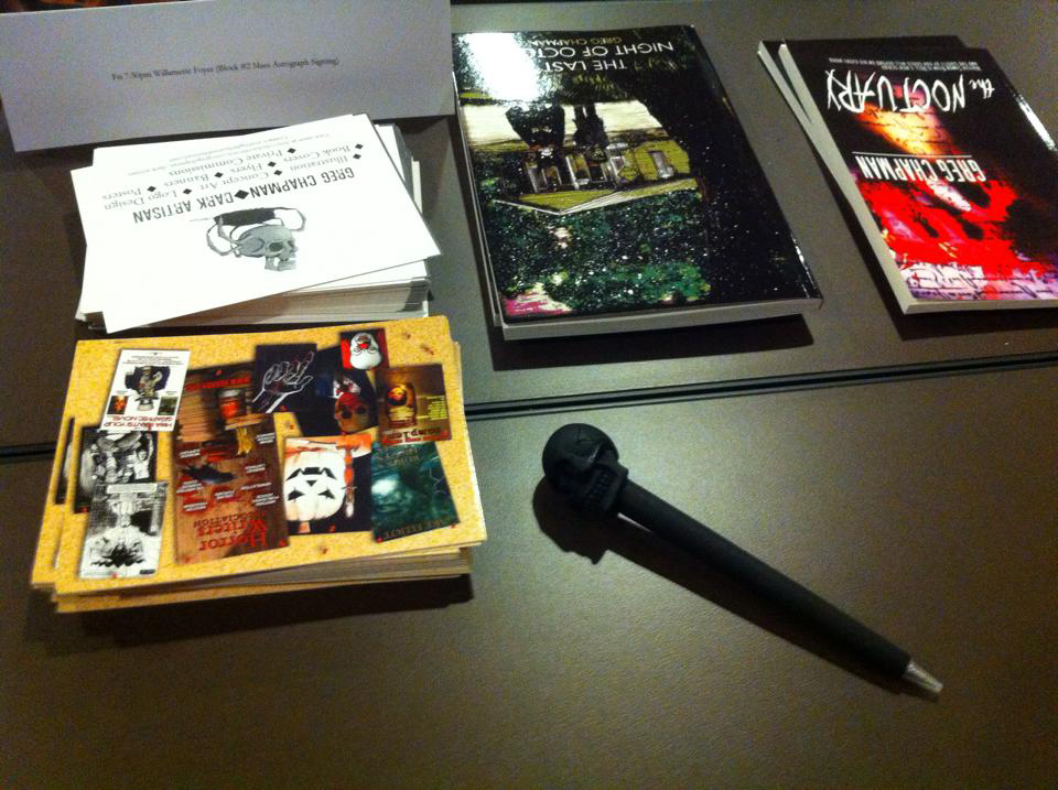 Peddling my wares at the Mass Signing.