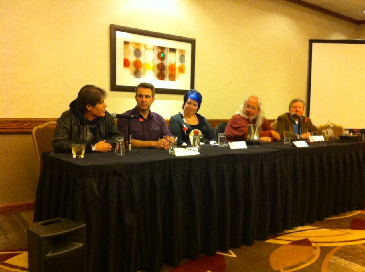 The horror film panel: (L-R) Jack Ketchum, Aaron Sterns, Lynne Hansen, Daniel Knauf and F. Paul Wilson.