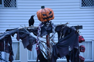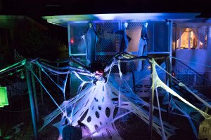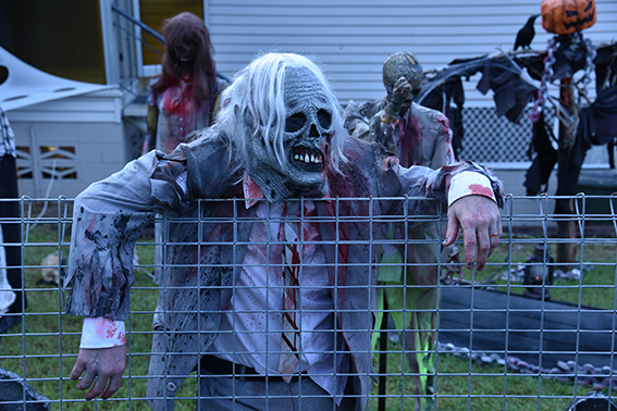 Check out some photos of my yard haunt below. Everything you see here is handmade, including the giant spider, which was a labour of love! And yes, that’s me in the horrible zombie mask! 🙂